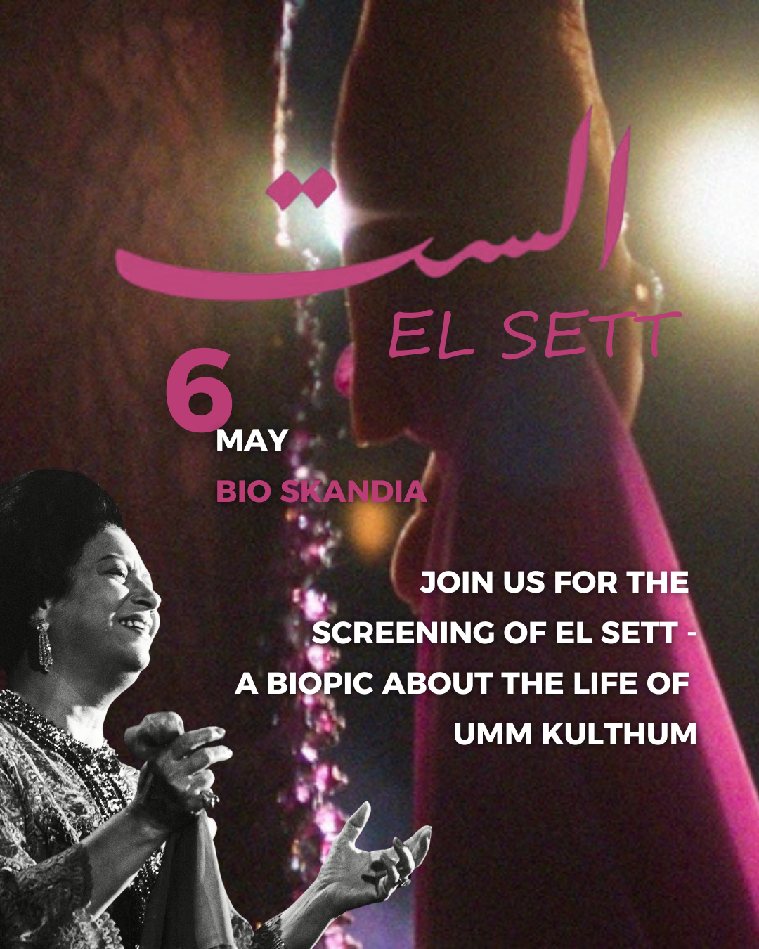 A curated night of film, culture, and conversation celebrating the life and legacy of Umm Kulthum, brought together through cinema and community.